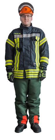 Während eines Einsatzes oder Übungsdienstes trägt der freiwillige Feuerwehrangehörige seine persönliche Schutzausrüstung.
