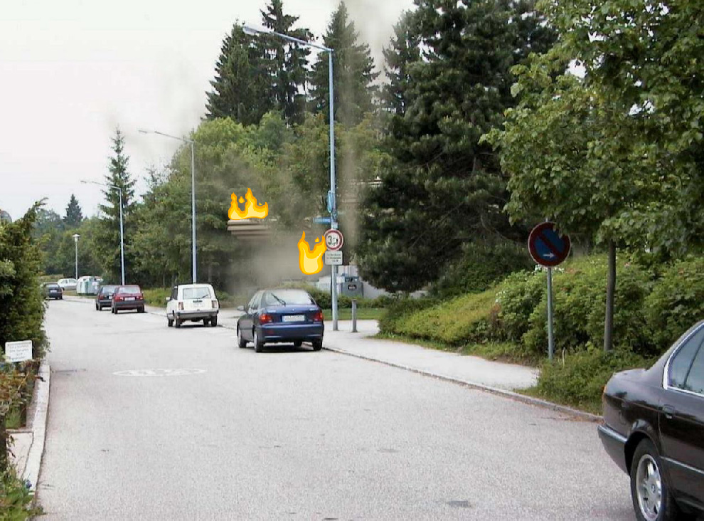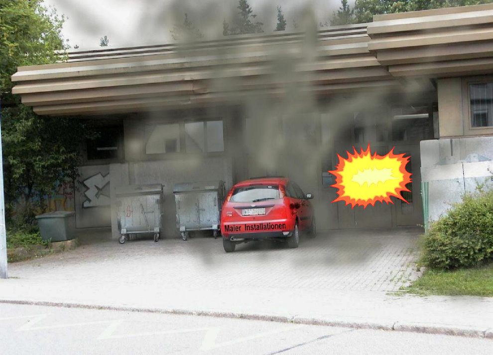 Hier sehen sie ein (fiktives) Schadensereignis. Setzten Sie anhand dieses Bilds einen Notruf im Formular unten ab.