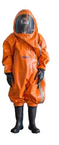 Wann immer Gefahrstoffe austreten, kommt der Chemikalienschutzanzug (CSA) zum Einsatz. Er schützt den Träger vor chemischen order biologischen Gefahren und isoliert ihn von seiner Umwelt. Das Arbeiten in diesem Anzug bringt auch den trainierten Träger schnell an die physische Leistungsgrenze, wodurch die effektive Arbeitszeit in der Regel nur ca. 20 Minuten beträgt.